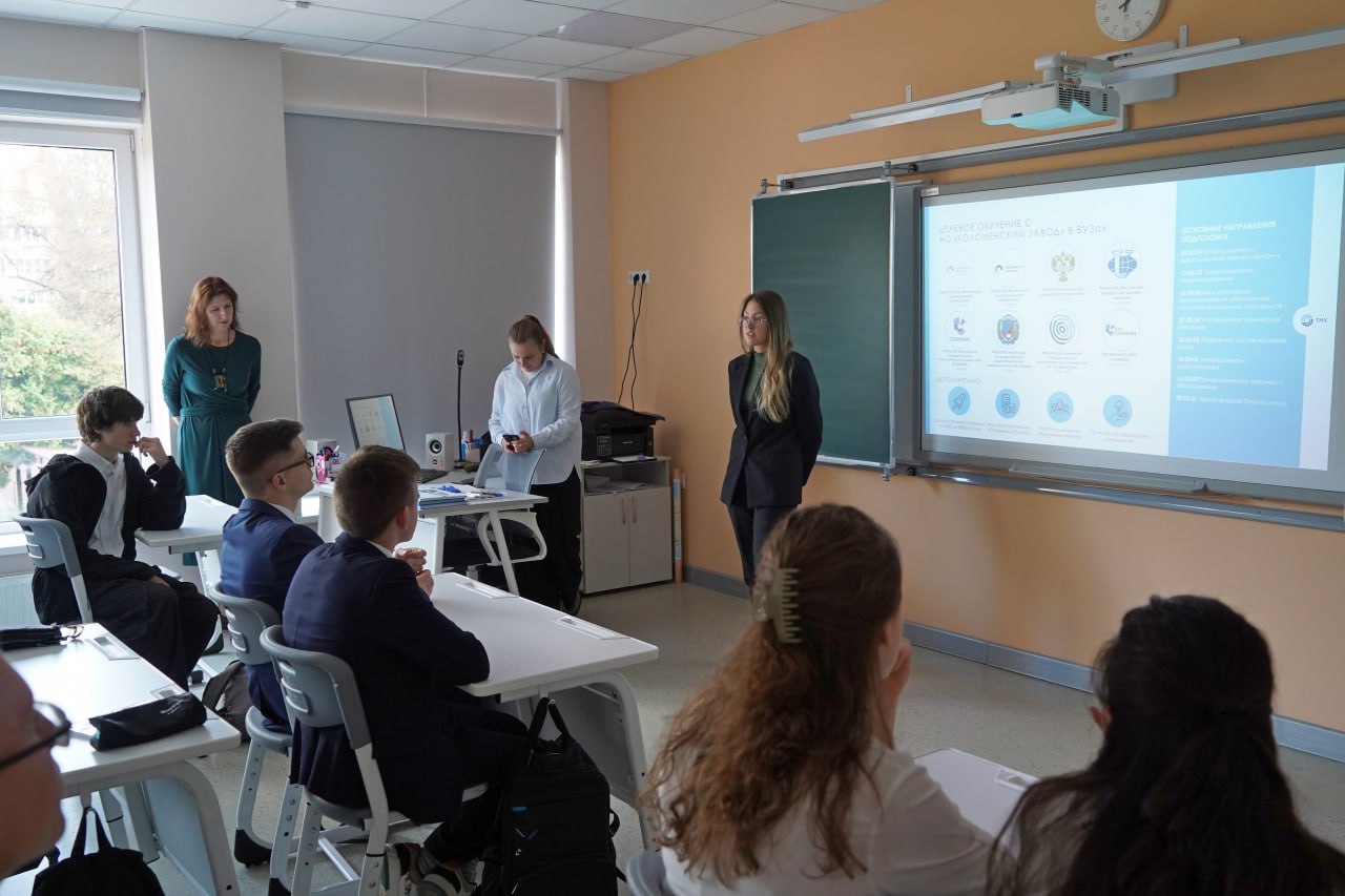 Встречи представителей предприятия со школьниками города также носили насыщенный информационный характер. Каждая из встреч проходила в формате диалога, поэтому учащиеся 8-11 классов смогли задать представителям завода все интересующие их вопросы. Большой отклик среди учеников нашла тема целевого обучения и последующего трудоустройства, семейной преемственности, заводских трудовых династий. Знакомство с историей Коломенского завода стало открытием для многих подростков – многообразие продукции за более, чем полуторавековую историю предприятия, а также мощный современный производственный комплекс продемонстрировали масштаб Коломенского завода в прошлом и настоящем и перспективы дальнейшего развития предприятия и его работников.