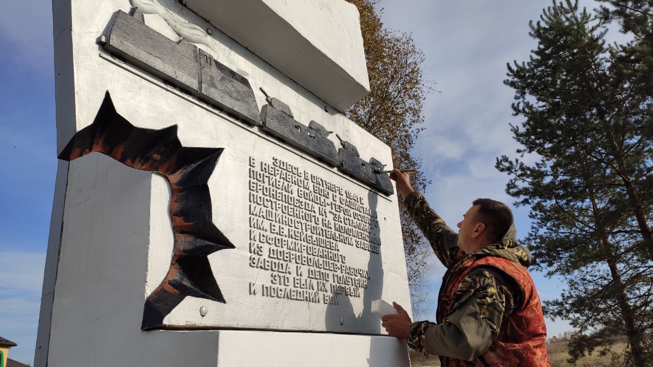 К памятному дню члены поискового отряда "Суворов" привели памятник в порядок, обновили надписи, закрепили кадры фотохроники бронепоезда.