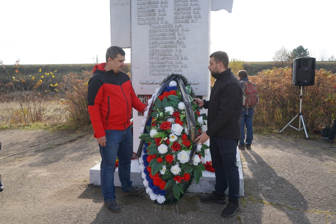Символично, что венок от Коломенского завода к памятной стеле возложили члены поискового отряда "Фронт": токарь-расточник кузнечно-прессового цеха № 1 Павел Шмелев и шлифовщик цеха М-63 Алексей Кузмищев.