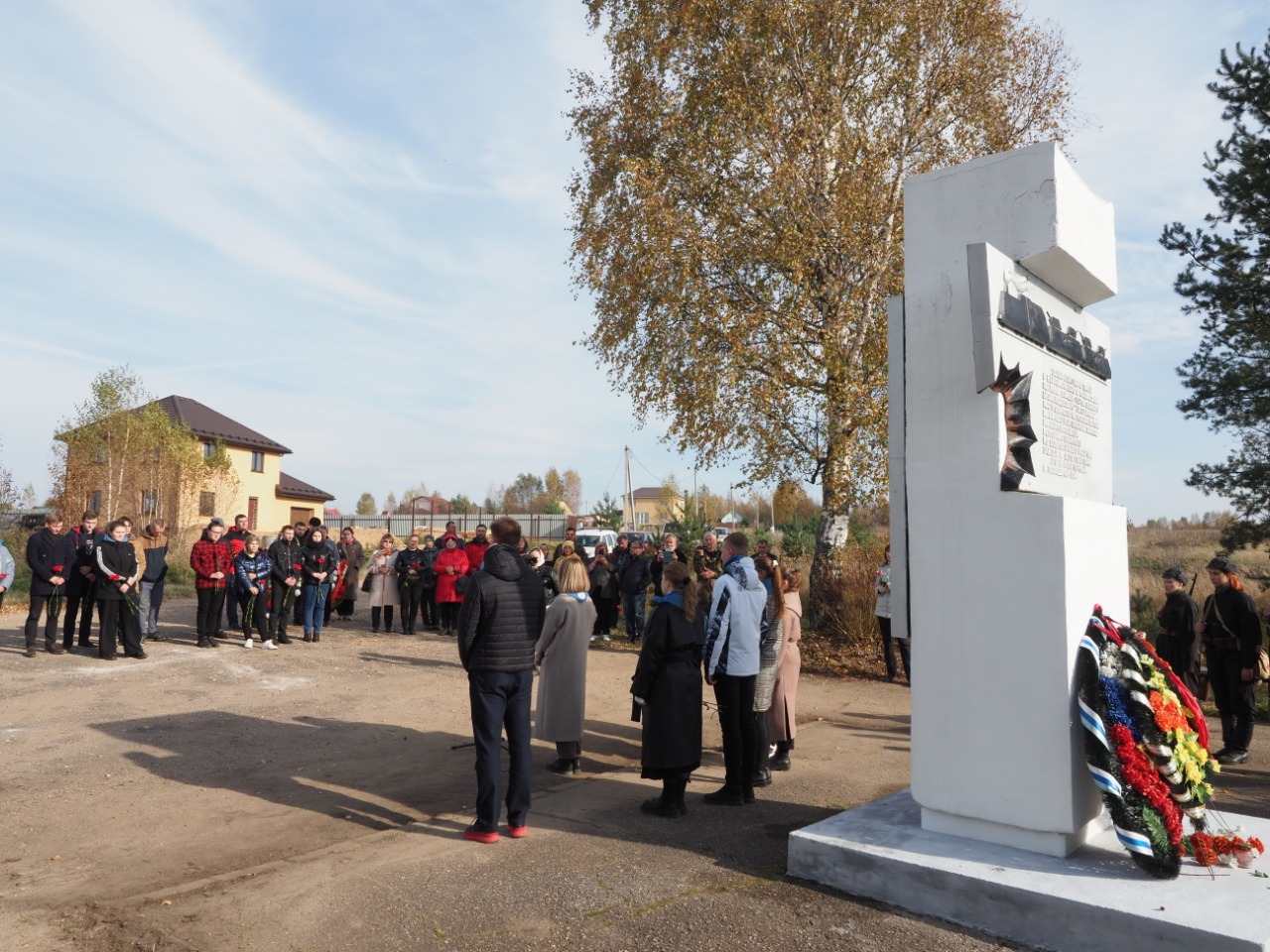 Почтить память погибших бойцов у стелы собрались гагаринцы и коломенцы: представители администрации, студенты, учащиеся коломенской гимназии № 8, где действует музей, посвященный истории особого бронепоезда № 1, поисковики, родственники бойцов, бывшие комсомольцы, благодаря которым была установлена памятная стела и другие неравнодушные люди, причастные к архивной и поисковой работе при установлении обстоятельств гибели и увековечении памяти павших воинов.